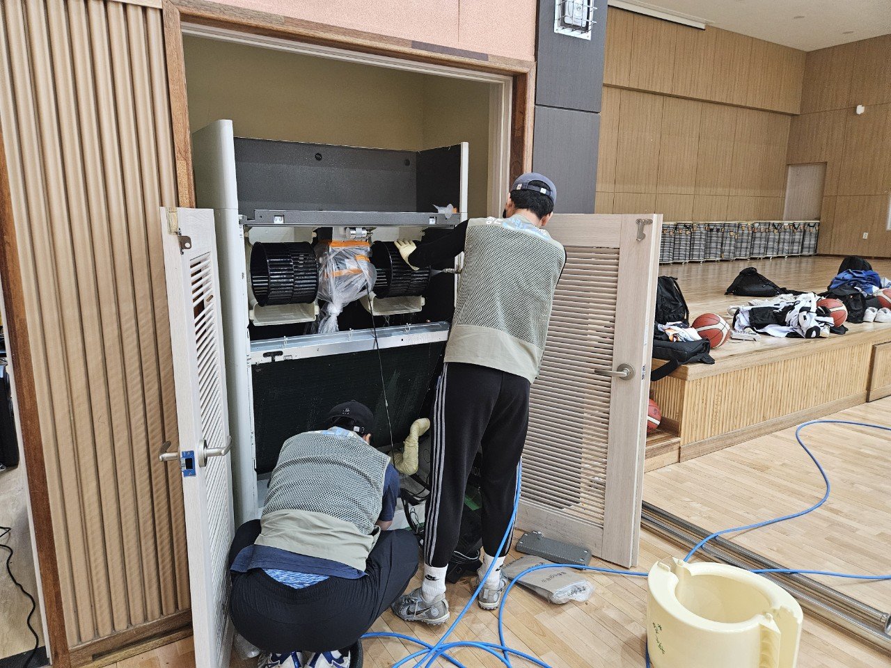 이번 의뢰는 한림초등학교에서 요청해주신 작업으로, 시스템에어컨부터 벽걸이형, 스탠드형까지 다양한 타입의 에어컨을 한 번에 관리하는 일정이었습니다.