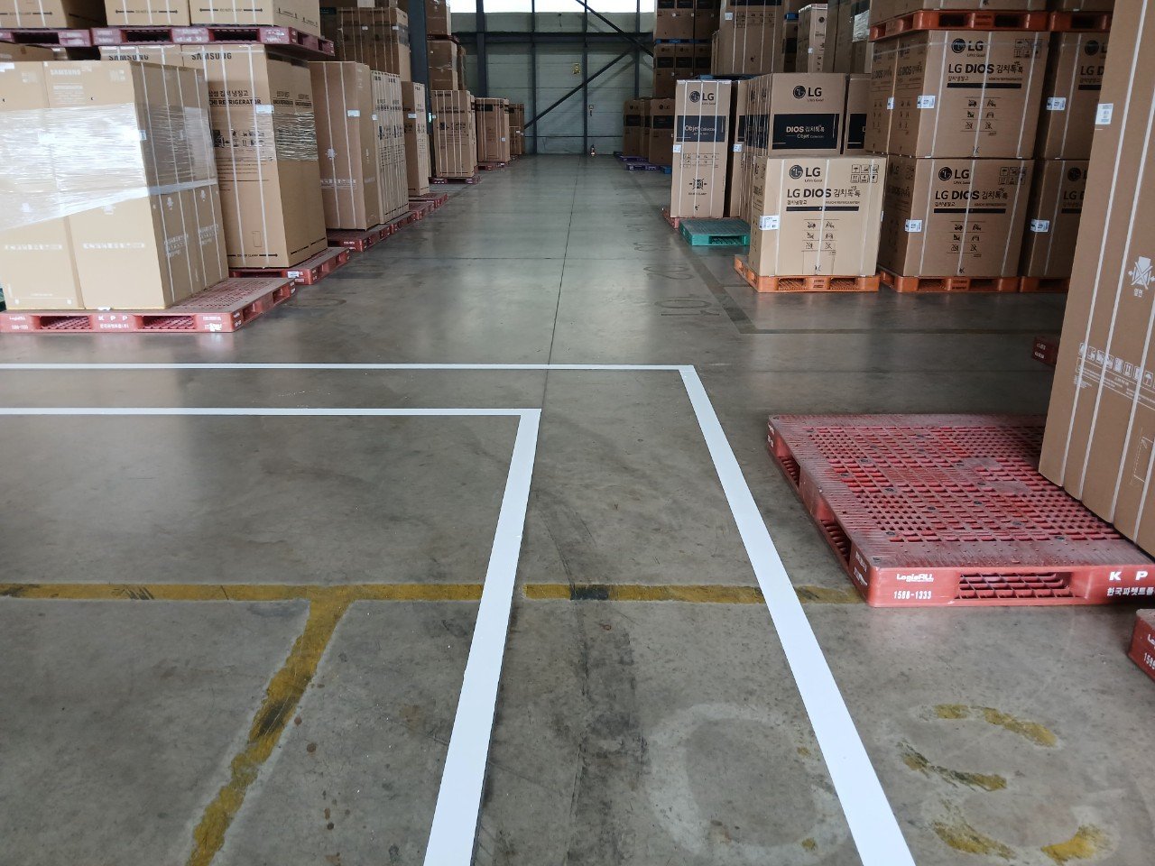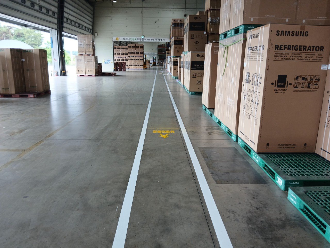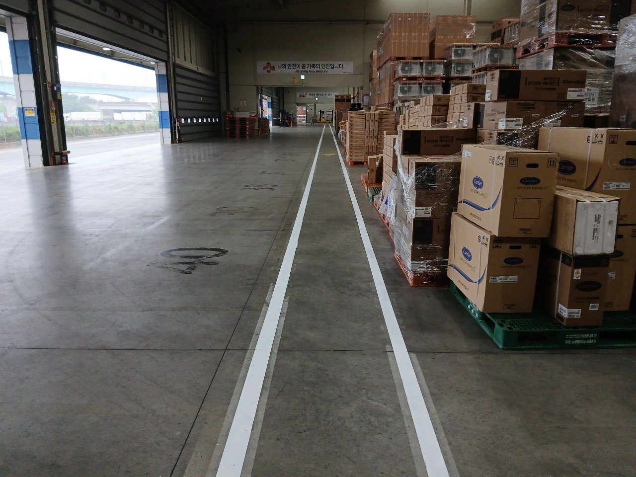 물류창고처럼 넓고 개방된 공간에서는 작업 동선이 명확하지 않으면 지게차 이동과 인원 통행이 서로 겹치기 쉽습니다. 이 때문에 눈에 잘 띄는 라인과 구역 구분은 단순한 표시를 넘어 안전과 직결되는 요소가 됩니다.
