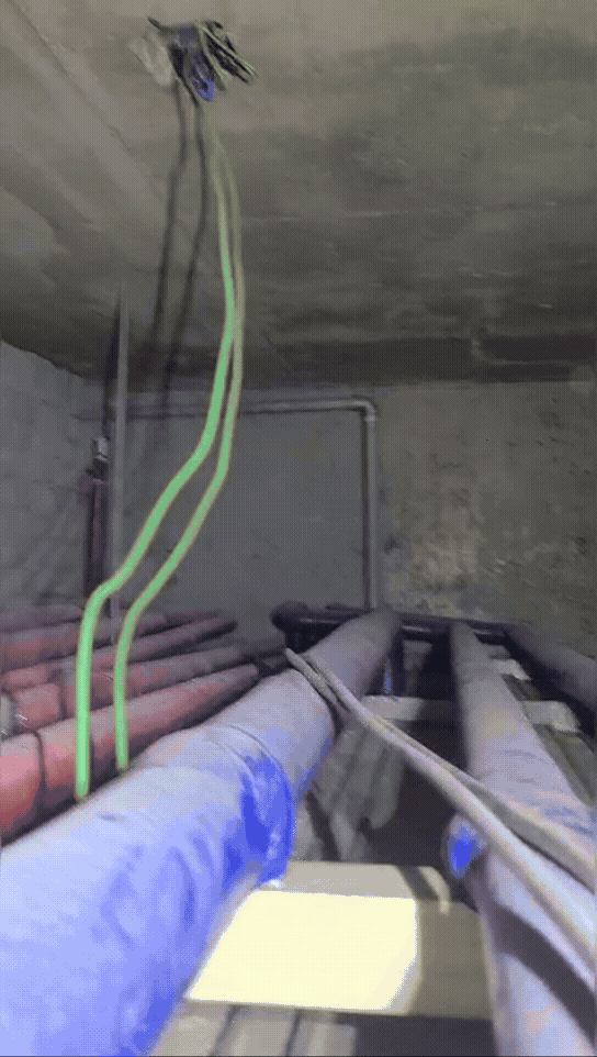 점검을 진행하면서 확인된 내용은, 1층 식당에서 5층까지 이어지는 전기선 라인 내부를 따라 빗물이 이동하고 있었다는 점이었습니다. 다시 말해, 눈에 보이는 식당 천장 한 지점에서만 문제가 생긴 것이 아니라, 상부에서 유입된 빗물이 전기 배선이 지나가는 공간을 타고 아래층까지 흘러내린 상황이었습니다.