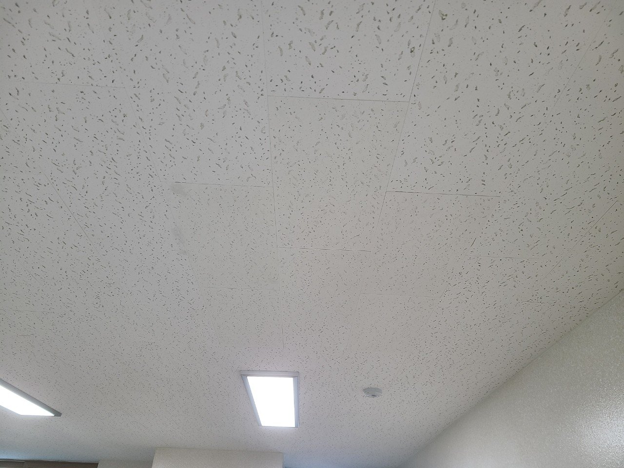 의뢰를 주신 사장님께서는 비만 오면 1층 식당 텍스 천장에서 물이 떨어진다고 하셨습니다. 천장 텍스 일부가 젖어 얼룩이 지고, 빗비가 심한 날에는 물방울이 똑똑 떨어지는 상황이었죠.