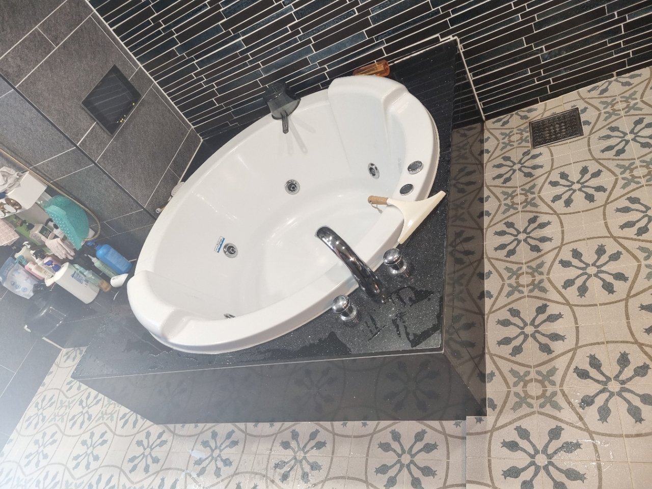 현장에 도착해서는 욕실 바닥 배수 상태, 벽체 마감, 그리고 월풀욕조 주변 실리콘 상태를 순서대로 점검했습니다.