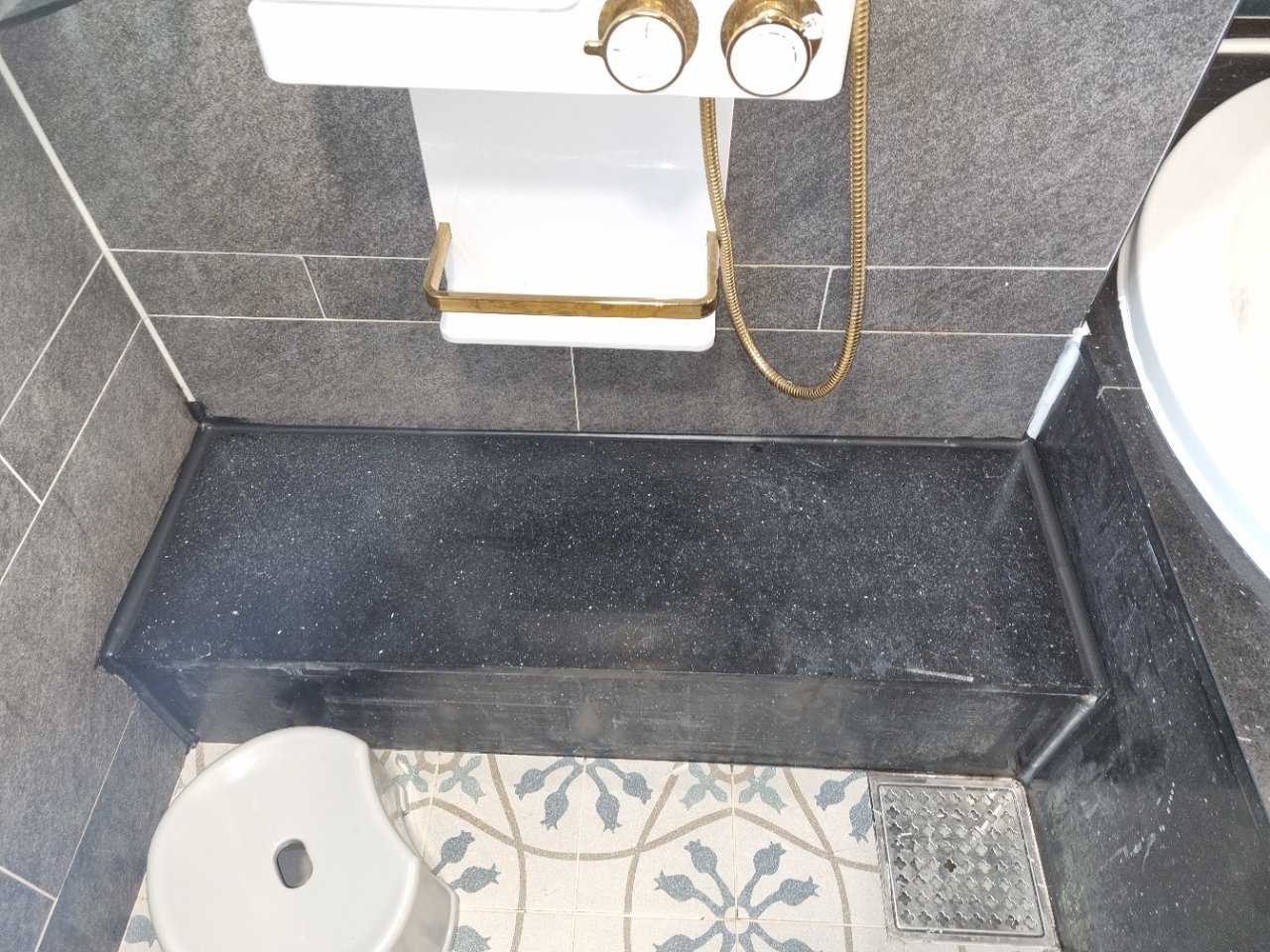 점검 과정에서 욕조 하부 마감 라인과 샤워 수전이 연결된 부위 주변에서 오래된 실란트의 갈라짐과 들뜸, 벌어짐이 다수 확인되었습니다. 이런 틈은 물 사용이 반복되면 생각보다 많은 양의 물이 안쪽으로 스며들 수 있는 구간입니다.