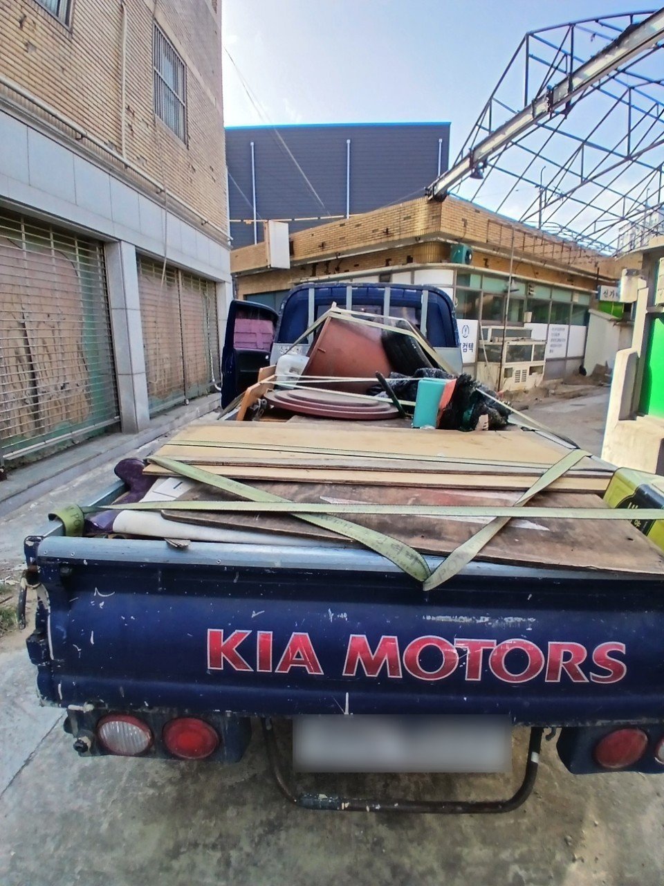 이번 현장에서도 철거 과정에서 나온 폐기물들을 종류별로 나눠 차량에 실었습니다. 적재할 때부터 흐트러지지 않도록 묶고 고정해, 이동 중 주변에 흩어지거나 떨어지지 않게 했습니다.