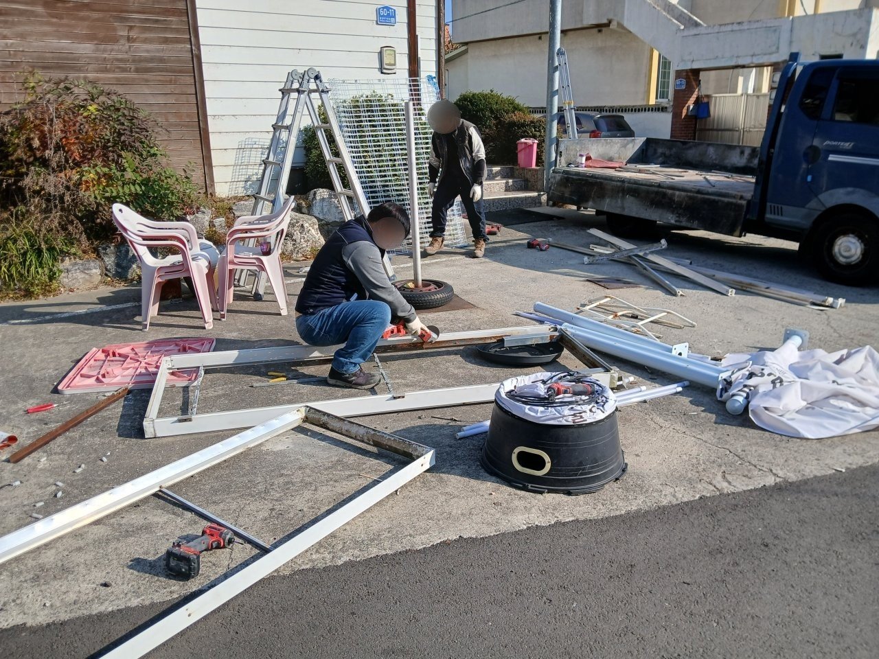 주차장 쪽에 설치되어 있던 철제 펜스와 야외용 의자, 테이블도 새 임차인분이 사용하지 않는다고 하셔서 모두 철거 대상으로 분류했습니다. 필요 여부를 하나하나 확인한 뒤, 재사용이 어려운 자재는 폐기물로, 재활용이 가능한 자재는 다시 분리해 차량에 실었습니다.