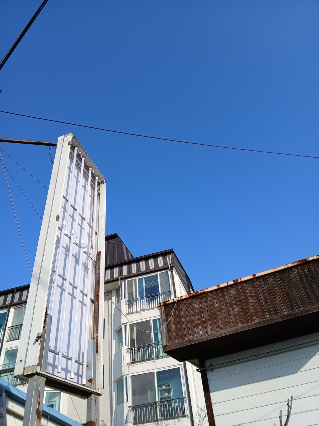 작업은 건물 외부에서부터 시작했습니다. 가장 먼저 메인 간판과 입간판을 철거하기 위해 고소작업대를 준비했습니다. 높이가 있는 작업이다 보니 안전 장비를 착용한 뒤 차근차근 분해를 진행했고, 간판을 지탱하고 있던 프레임은 녹이 많이 슬어 있어 절단 후 사업장폐기물로 분리해 처리했습니다.