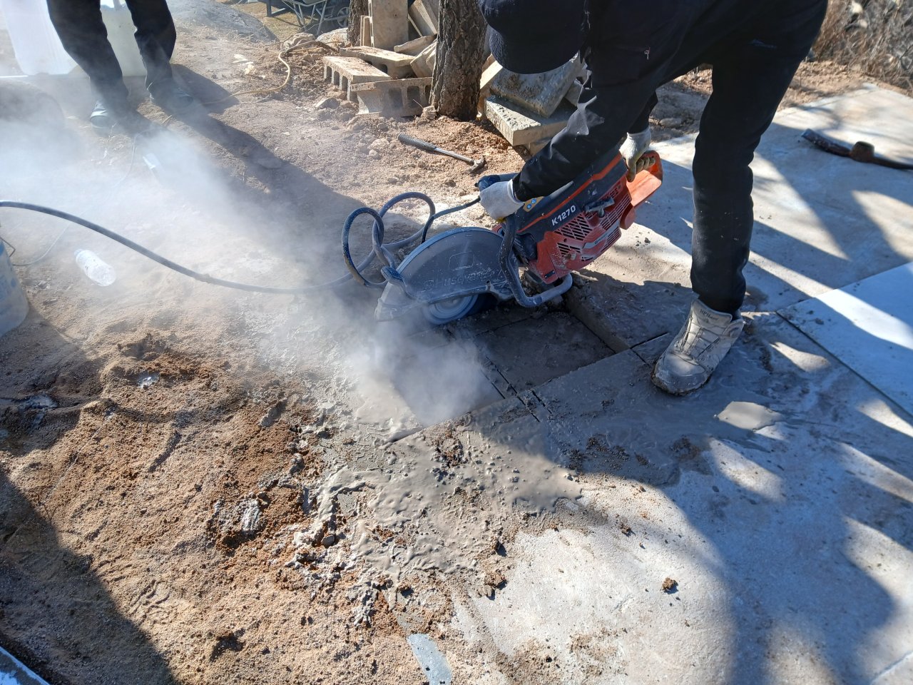 콘크리트 절단 장비를 가동하면 필연적으로 소음과 분진이 발생합니다. 특히 야산 현장은 주변에 흙먼지와 자갈이 많아, 잘못하면 작업 구역이 너무 어지럽고 위험해지기 쉽습니다.
