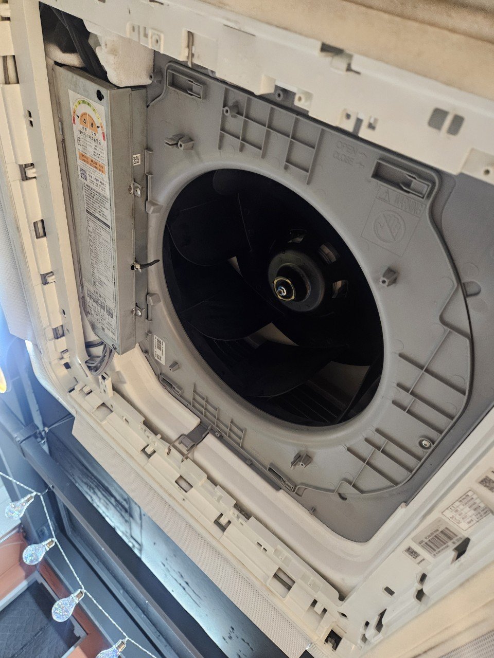 이 기름 입자가 먼지와 섞여 에어컨 내부에 쌓이면, 겉에서 필터만 가볍게 털거나 물티슈로 닦는 정도로는 깨끗해지지 않습니다. 특히 천장형 제품은 내부 구조가 복잡해서, 겉으로 보이는 패널만 깨끗해 보여도 안쪽 열교환기와 팬 주변에는 끈적한 오염이 꽤 많이 쌓여 있는 경우가 많습니다.