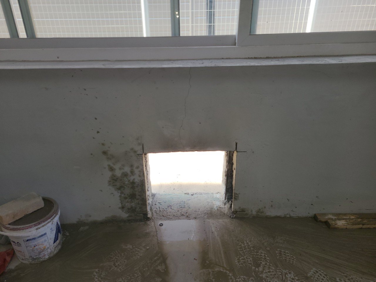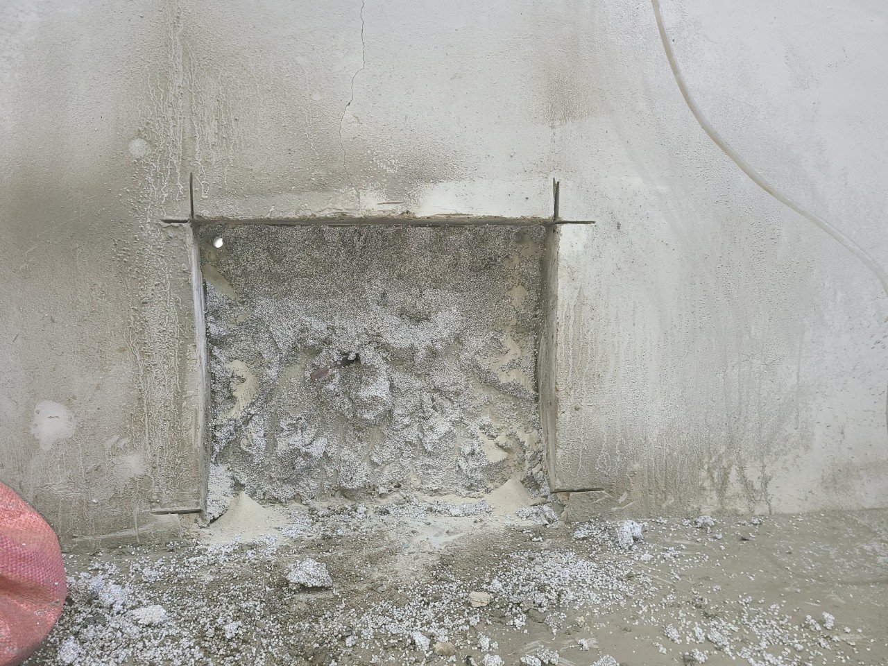 작업을 진행하면서 느꼈던 점은, 외벽 콘크리트 벽체 두께가 생각했던 것보다 상당히 두꺼웠다는 부분입니다. 체감상 약 30cm 정도로 느껴질 만큼 두께가 있는 구조였고, 단순하게 겉면만 따고 들어가는 작업으로는 부족한 상황이었습니다.