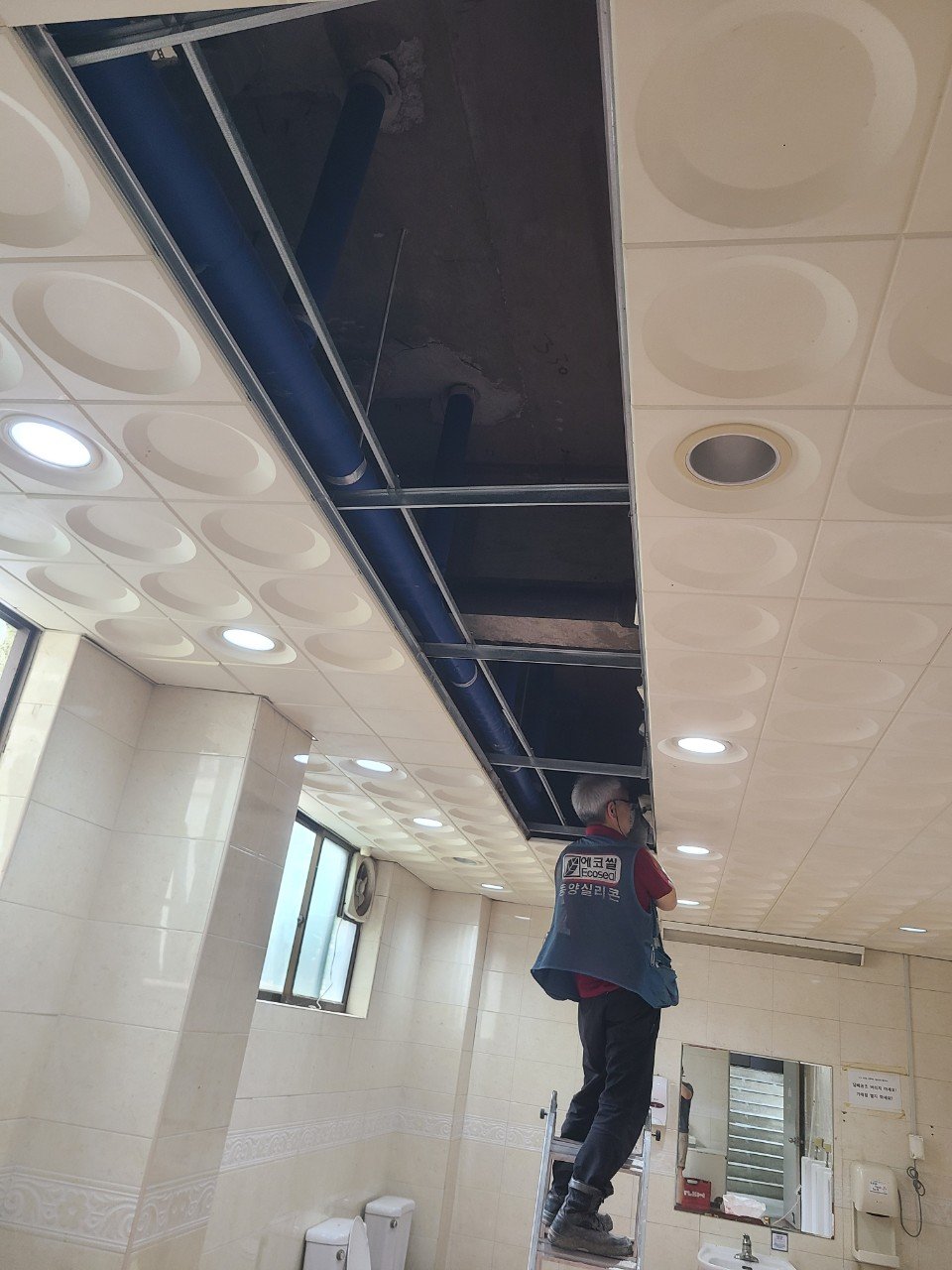 바닥 작업과 함께 천장 쪽 점검도 병행했습니다.
