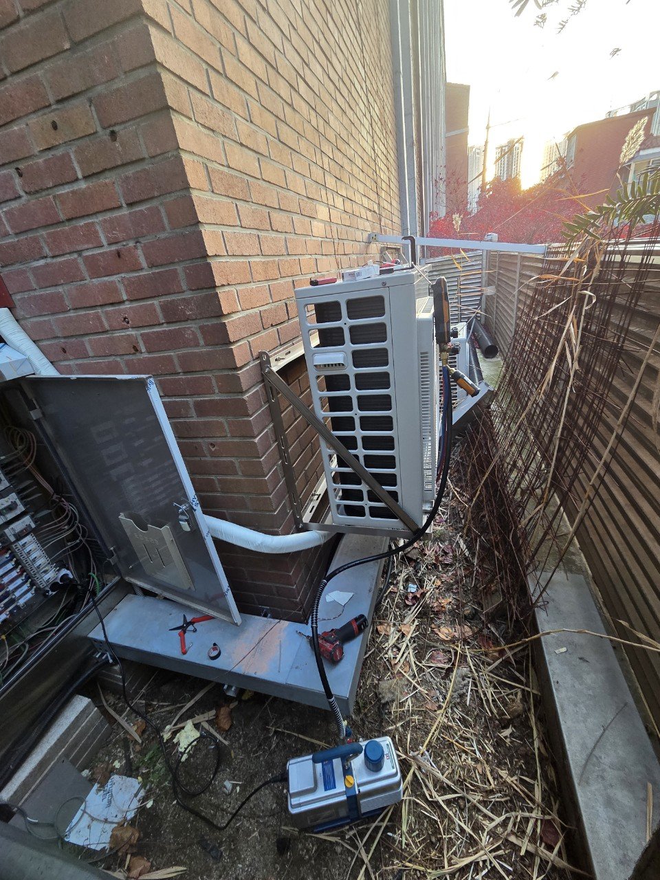 모든 배관 연결과 실외기 설치를 마친 후에는 냉매 누설 방지를 위한 진공 작업을 충분한 시간 동안 진행했습니다.