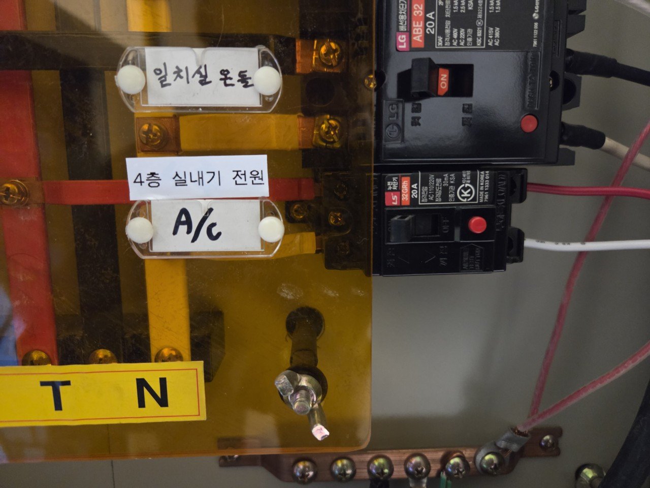 성당 전기실에서 실내기 쪽으로 전원을 따로 가져와야 하는 구조였기 때문에, 먼저 기존 전기 배선 상태를 확인한 뒤 차단기 용량과 배선 규격을 체크했습니다. 이후 안전 기준에 맞는 용량으로 회로를 구성해 실내기로 전원을 인입했고, 누전 및 과부하 우려가 없도록 마감까지 신경 써서 연결을 마무리했습니다.