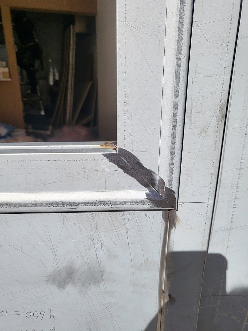 현장 실측 후 기존 골조에 맞춰 금속 프레임을 용접·가공했습니다. 출입문과 쇼바창이 정확히 자리 잡도록 오프닝을 먼저 구조적으로 고정해 뒤 탈락이나 비틀림을 방지했어요. - 출입동선에 맞춘 가마찌도어