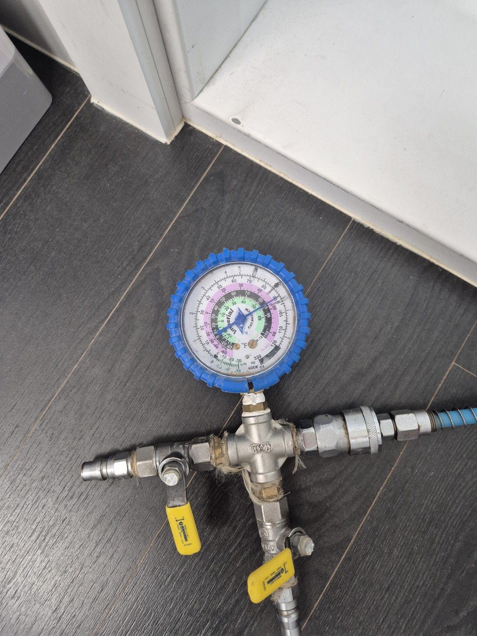 먼저 위층의 수도 배관과 난방 배관에 게이지를 연결해 공압을 주고 압력 변동을 관찰했습니다. 결과는 정상 유지. 상수·난방 계통에서의 누수 가능성은 낮다고 판단했습니다.