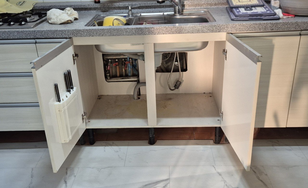 마지막으로 싱크대 하부장 내부 구조를 원상에 가깝게 복구해, 평소처럼 사용하는 데 불편함이 없도록 정리했습니다. 누수는 잡았지만 수납이나 사용성이 떨어지면 생활에 불편이 생기기 때문에, 이런 부분까지 함께 챙겨드리고 있습니다.