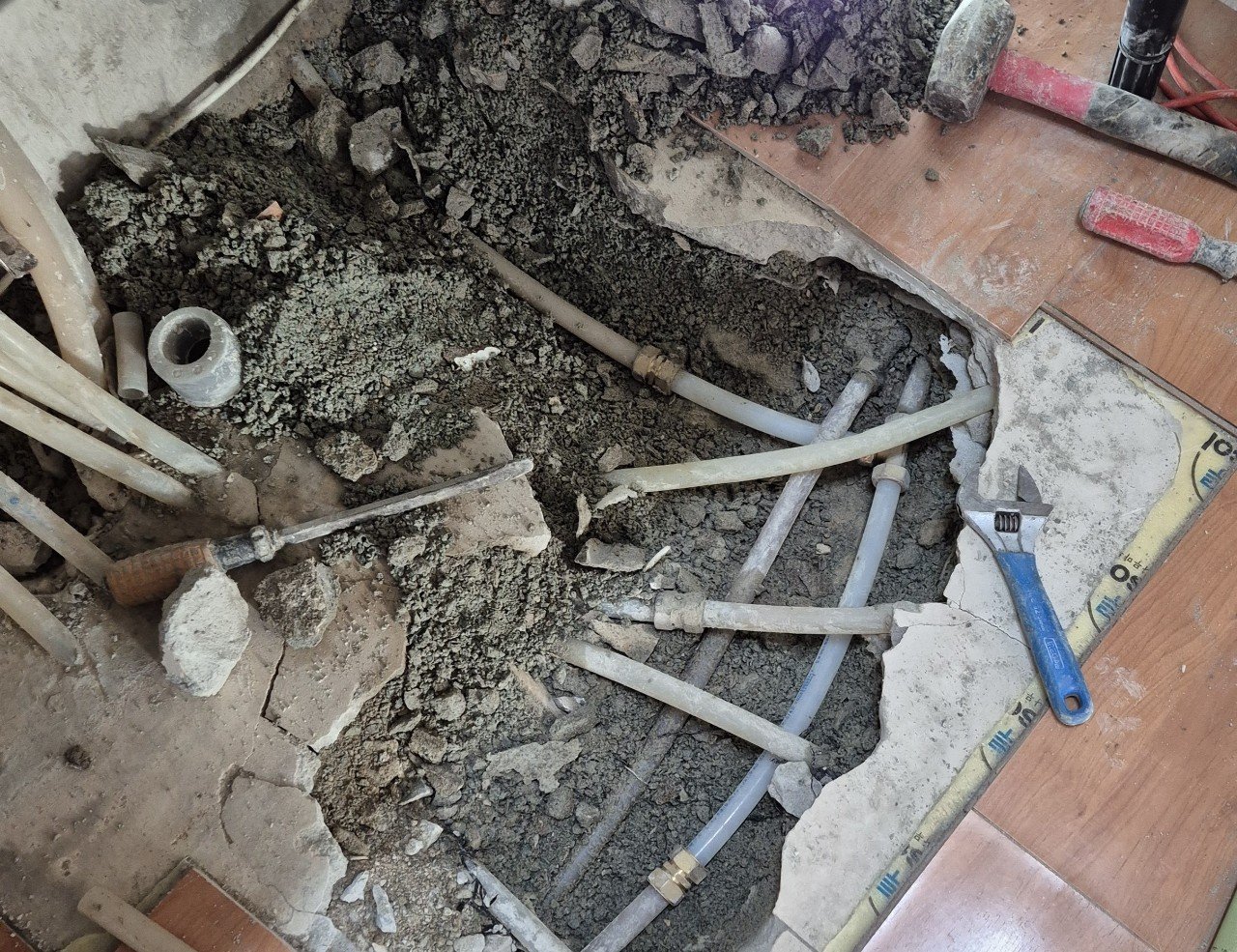 최소 철거 후 배관 노출, 누수 지점 확인과 교체 작업