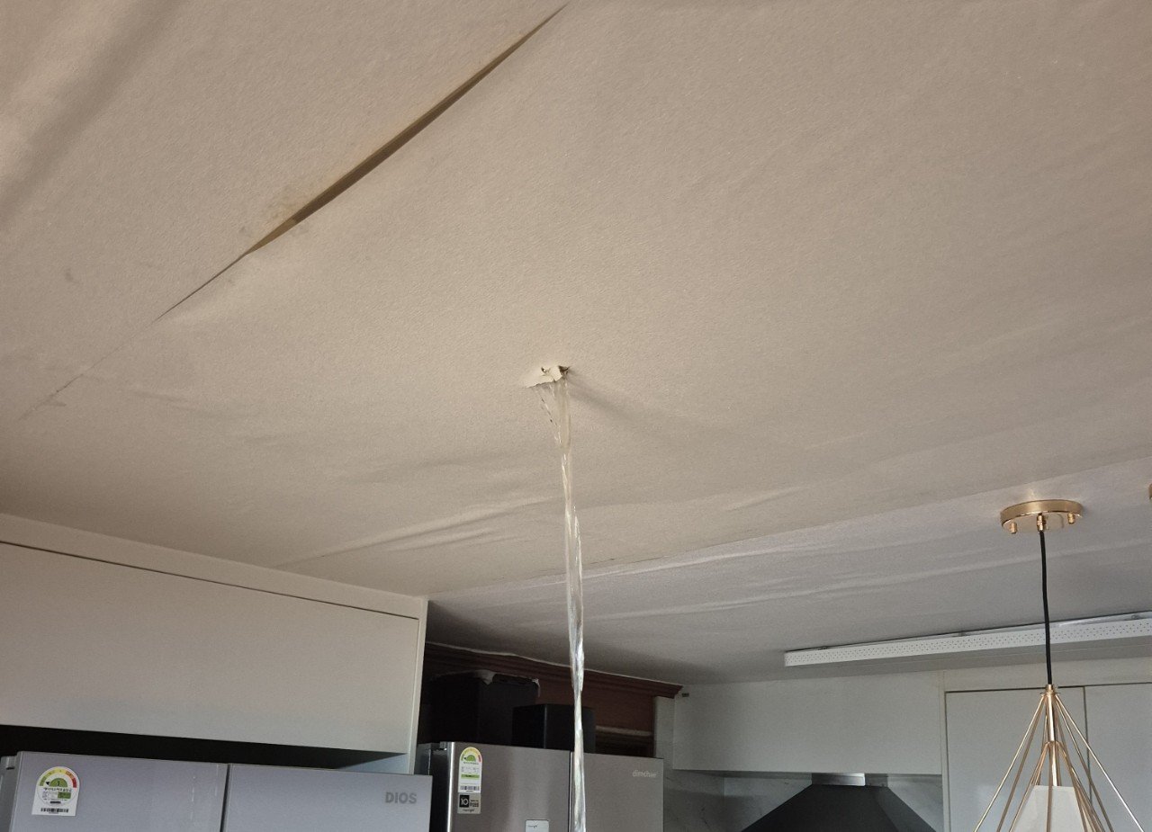 문의 전화는 아래층 세대에서 천장에 물방울이 떨어진다는 내용이었습니다. 주로 주방 쪽 천장에서 물이 똑똑 떨어지는 상황이었고, 이미 한동안 누수가 진행된 듯한 흔적이 보였다고 하셨습니다.