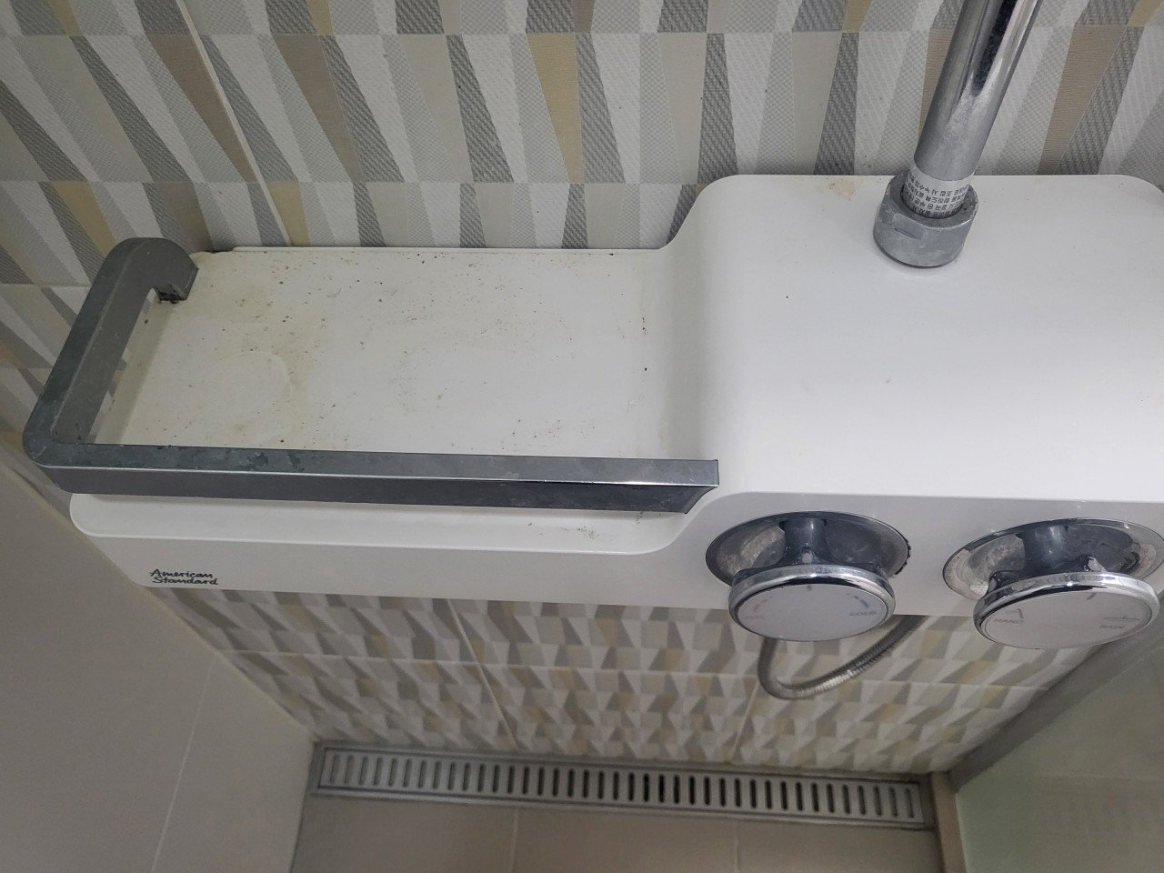 - 욕실 바닥의 신발자국, 수전 워터스팟, 환풍기 내부 먼지