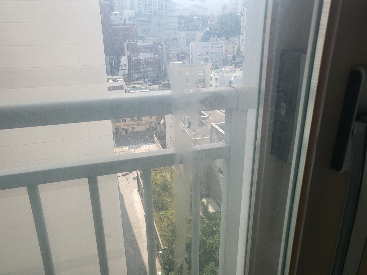 - 창틀과 유리에는 먼지+얼룩 혼재