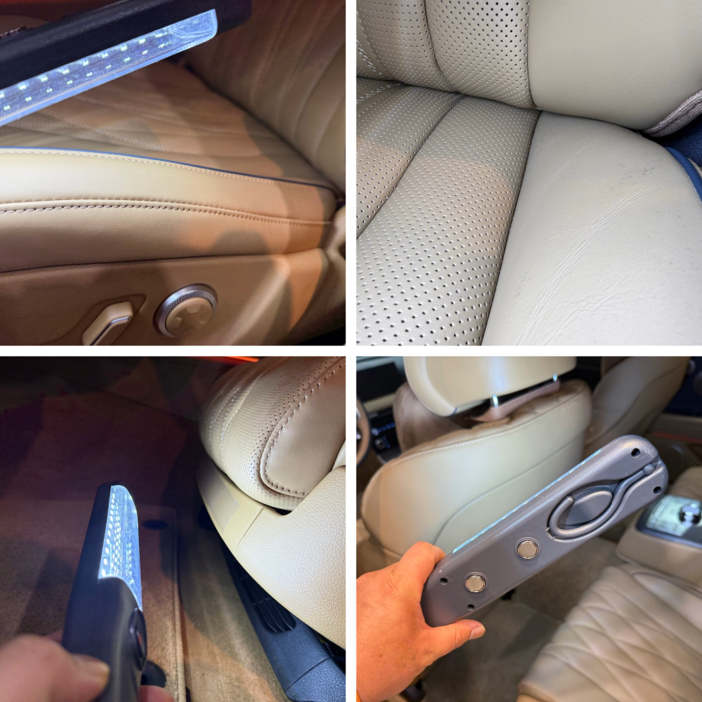 신차를 아무 곳에나 맡기기 불안하셨다는 고객님은 저희 블로그 후기들을 보시고 “새 차처럼 다뤄준다”는 느낌을 받아 예약을 주셨다고 해요. 입고 후 색온도가 다른 작업등으로 시트, 도어 트림, 대시보드, 바닥 매트, 천장까지 섬세하게 점검해 오염 분포를 먼저 파악했습니다.