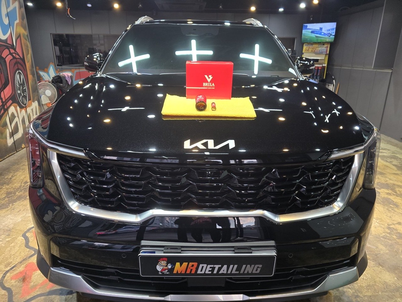이번 신형 쏘렌토는 석회물 제거 → 광택 → 브릴라 유리막코팅까지 원스톱으로 완료했습니다. 보험처리 안내부터 시공 후 점검, 사후관리까지 미스터디테일링이 책임지고 도와드립니다.