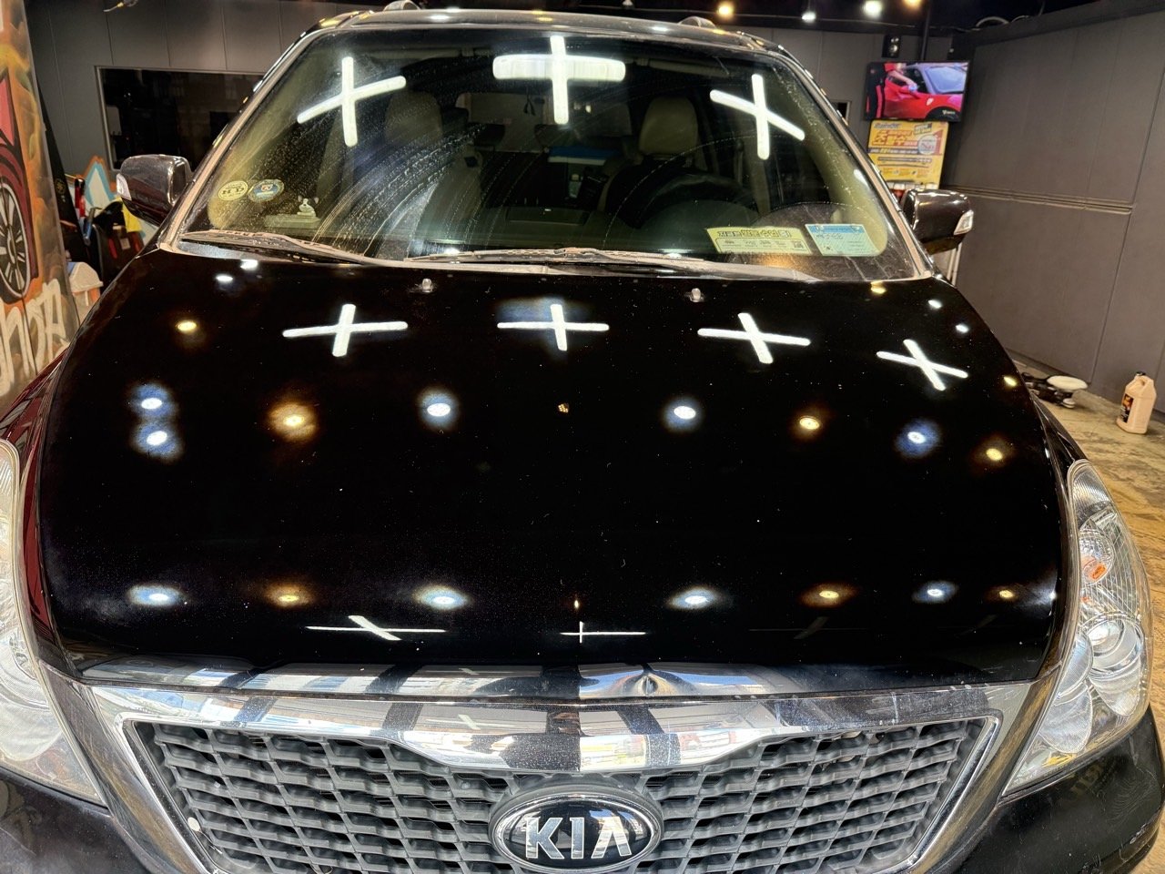 입고된 카니발은 과거에 본넷만 재도색 이력이 있었고, 시간이 지나면서 광택이 빠져 표면이 칙칙하고 얼룩이 눈에 띄는 상태였습니다. 차주님이 셀프 광택과 콤파운드 작업도 시도하셨지만 기대만큼 결과가 나오지 않아 블로그 후기를 보고 저희를 찾아주셨어요.