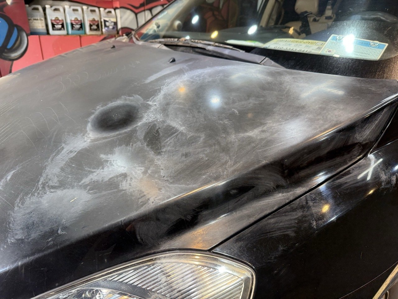 솔직히 이런 컨디션에서 가장 확실한 방법은 재도색입니다. 다만 비용 부담과 작업 시간 등을 고려해 우선 ‘본넷 부분 광택’으로 최대한의 복원을 목표로 방향을 정했습니다.