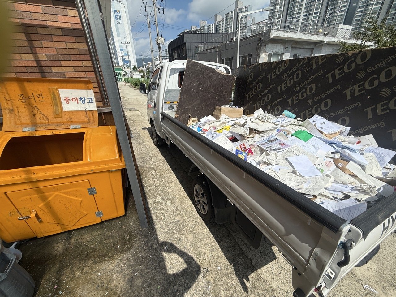 부산 동래구에 있는 한 중학교에서 모아둔 폐지를 수거해 달라는 요청을 받고 현장에 다녀왔습니다. 최근 학교, 관공서, 상가에서 폐지 수거 문의가 부쩍 늘고 있는데요, 예전처럼 동네에서 개인적으로 모아가시는 분들이 줄어들다 보니 꾸준히 맡길 업체를 찾는 곳이 많아졌습니다.