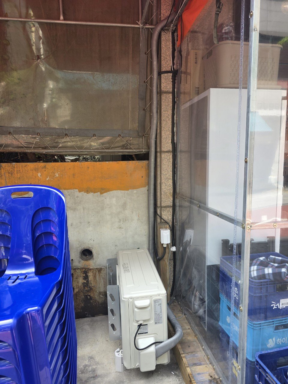 - 실외기 설치: 통행이 잦은 좁은 공간이어서 진동 방지 패드와 받침대를 사용, 흔들림을 최소화하며 안전하게 고정