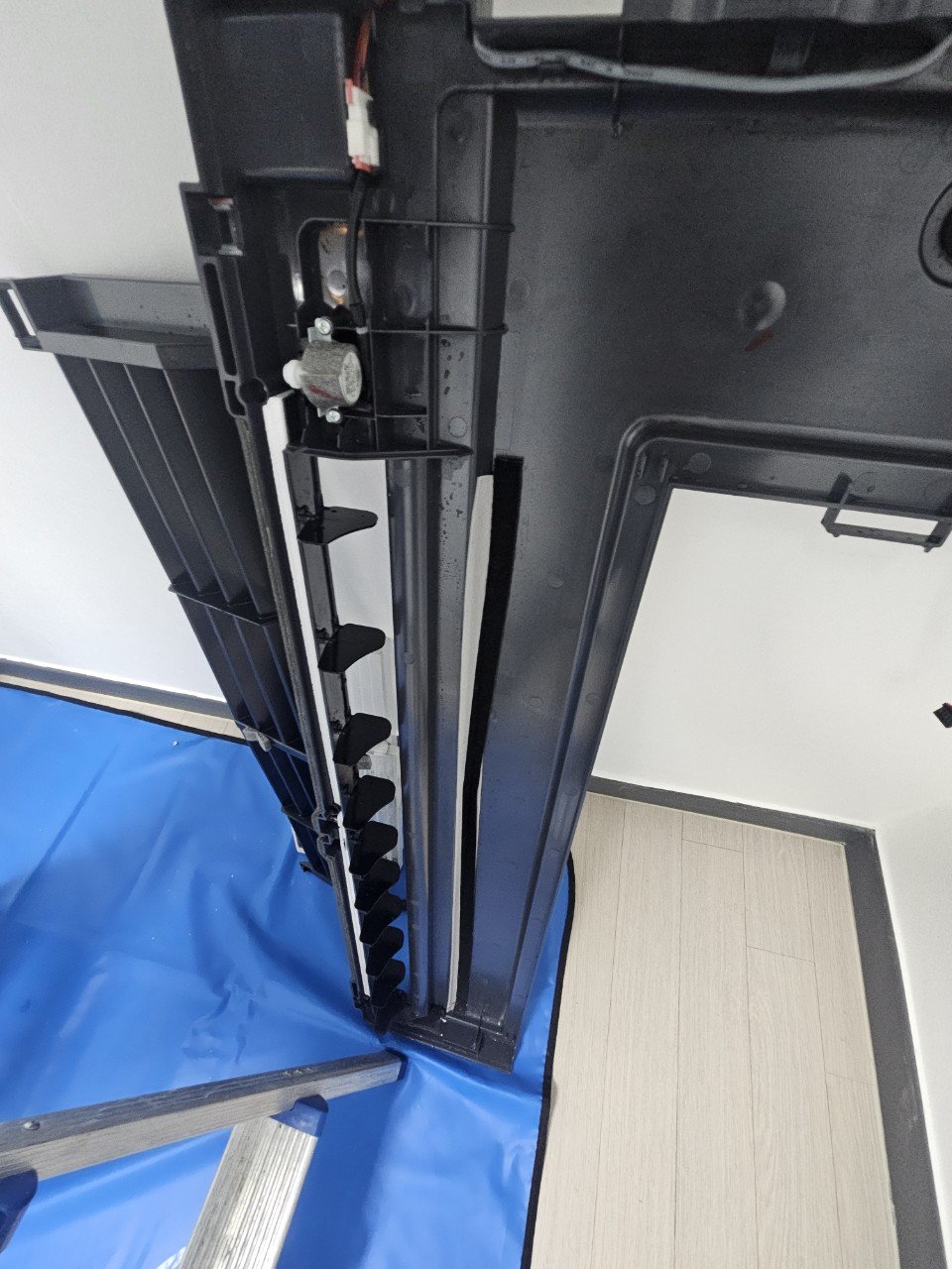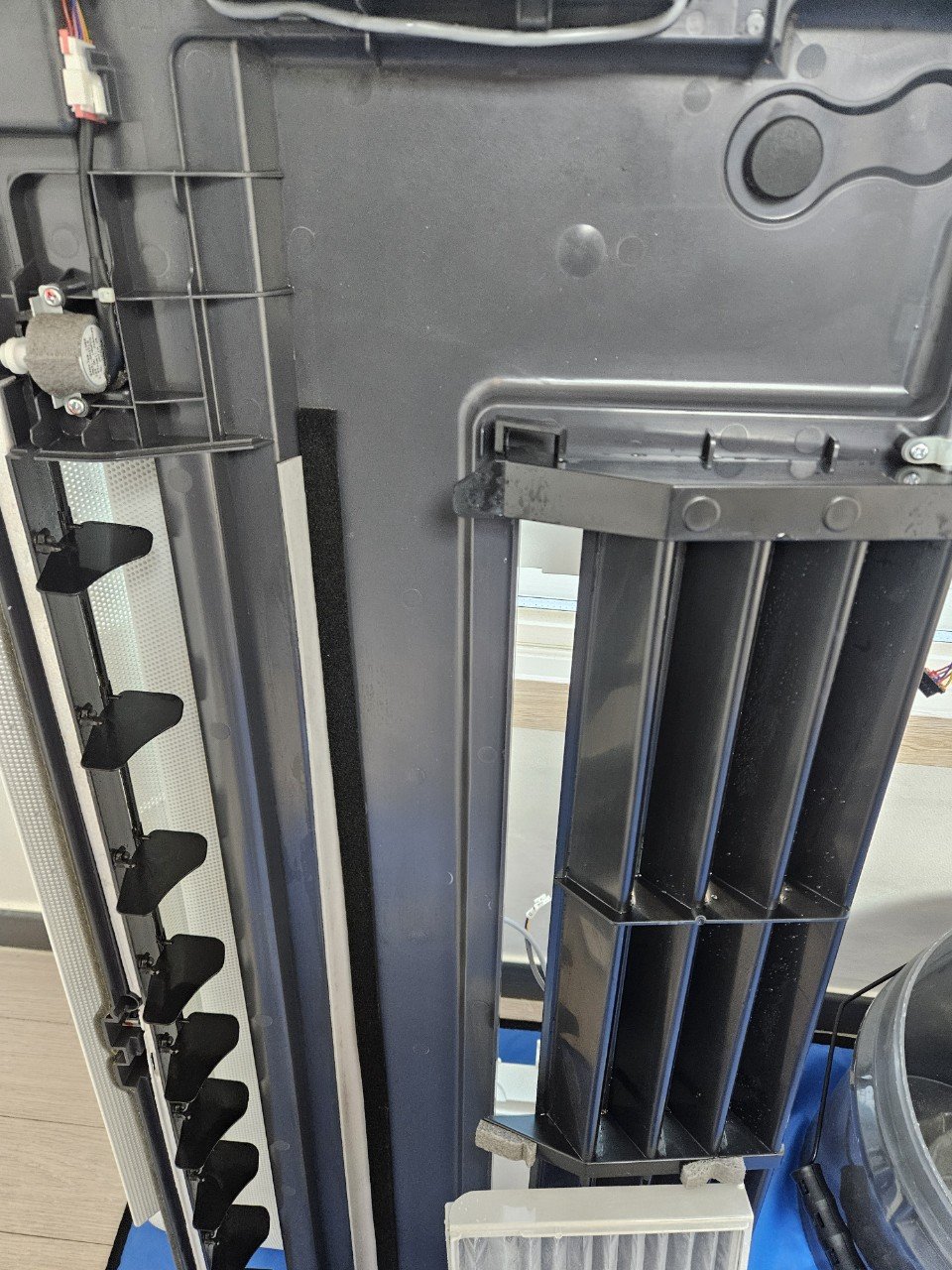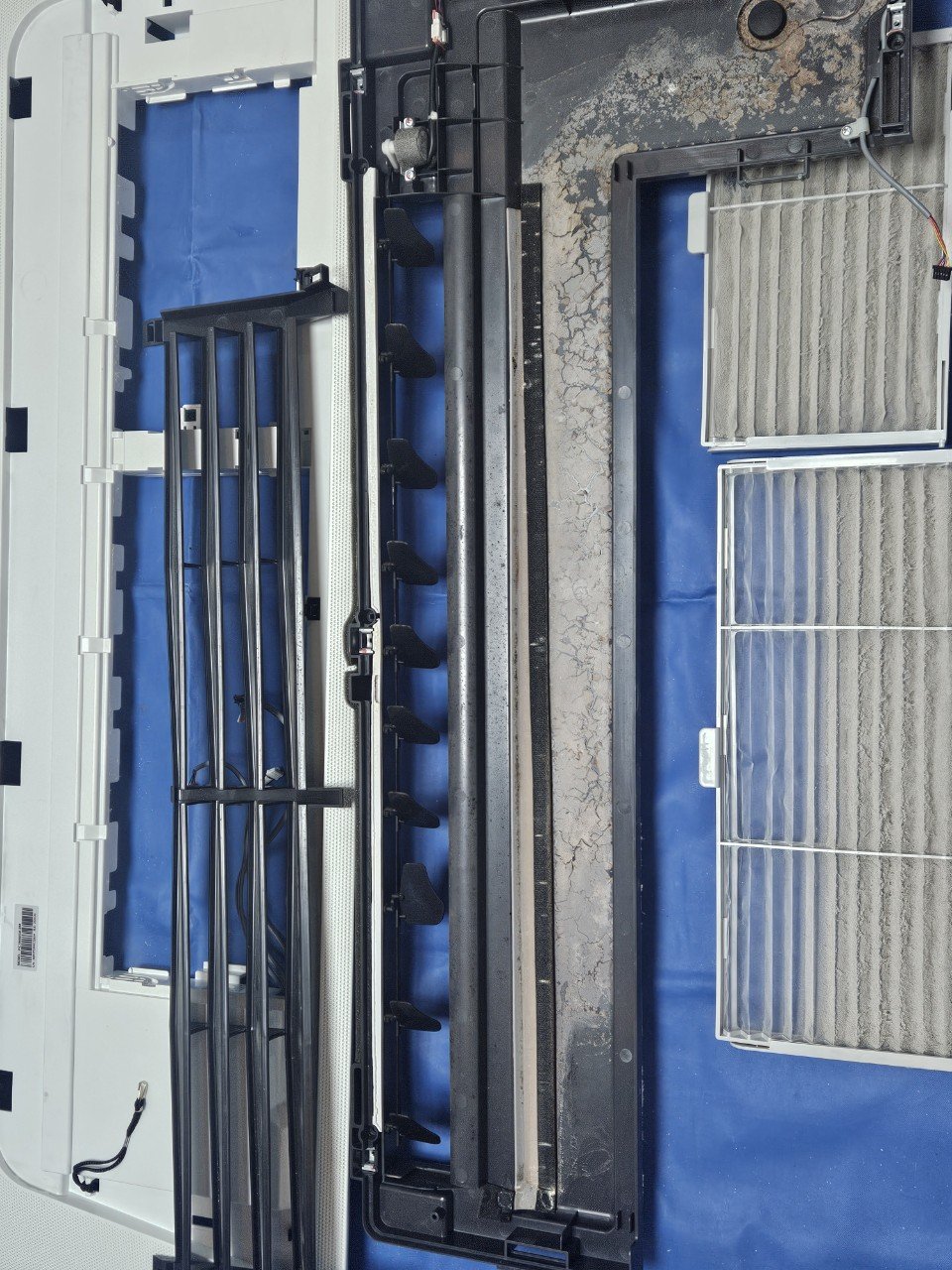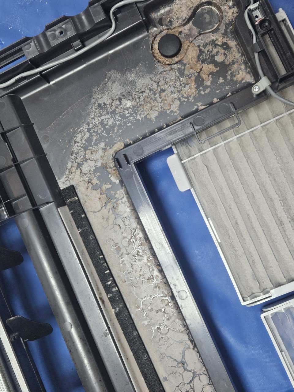 분해를 모두 마친 뒤 내부를 확인해보니 눈으로 봐도 곰팡이와 물때가 상당히 많이 자리 잡고 있었고, 특히 드레인 부분의 오염도가 높은 편이었습니다.