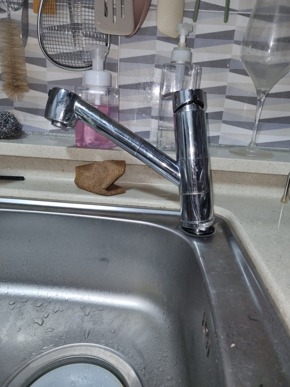 스파우트가 연결되는 부분에서는 미세 누수가 반복되면서, 사용 후에 물방울이 맺혀 있는 일이 잦았다고 합니다. 설거지를 하다 보면 수압이 일정하지 않고, 순간적으로 세기가 줄어드는 느낌도 있어 사용하면서 스트레스가 쌓이고 있었습니다.