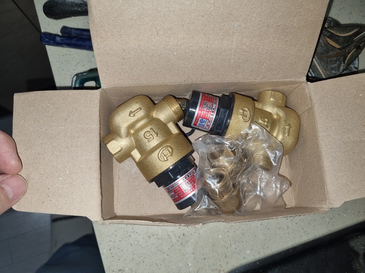 이후 신품 15A 감압변을 준비해, 본체에 표시된 유량 화살표 방향을 실제 배관 흐름 방향과 정확히 맞춘 뒤 과도한 힘을 주지 않고 체결했습니다. 감압변은 방향과 토크 모두 중요하기 때문에, 균형 있는 힘으로 천천히 조여 주는 과정이 필요합니다.