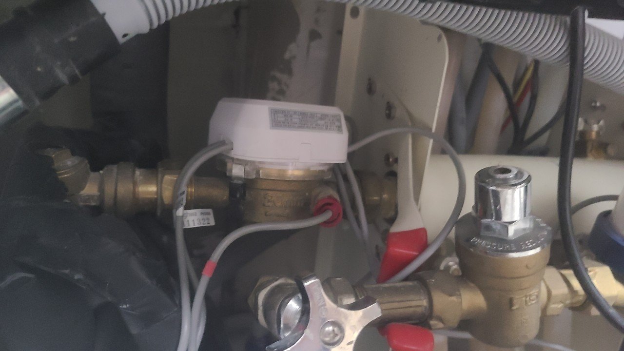 현장은 계량기 화면이 ‘0’에서 움직이지 않는 상태였습니다. 우선 입·출수 밸브를 잠가 압력을 안정시킨 뒤, 기존 계량기의 유량 화살표 방향, 결선 상태, 온도센서 접촉을 차례로 확인했습니다. 재현 테스트에서도 표시값이 변화하지 않았고, 센서 케이블 피복이 굳어 미세 균열이 보였습니다. 단순 접점 문제를 넘어서 본체와 온도센서의 동시 불량 가능성이 높다고 판단했습니다.