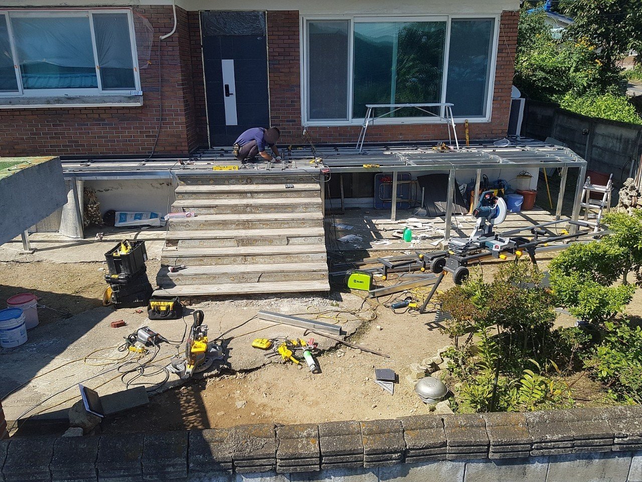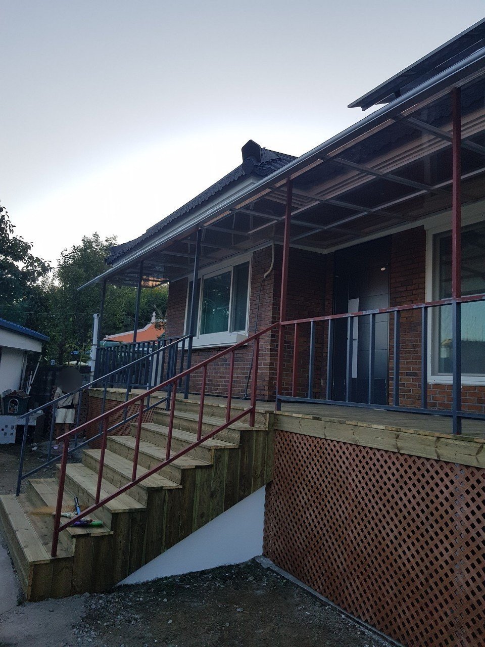 금속공사 난간시공 단열방화문 데크시공 렉산지붕 방부목데크 알루미늄골조 외부공사 용인주택 잡철공사 현장후기
