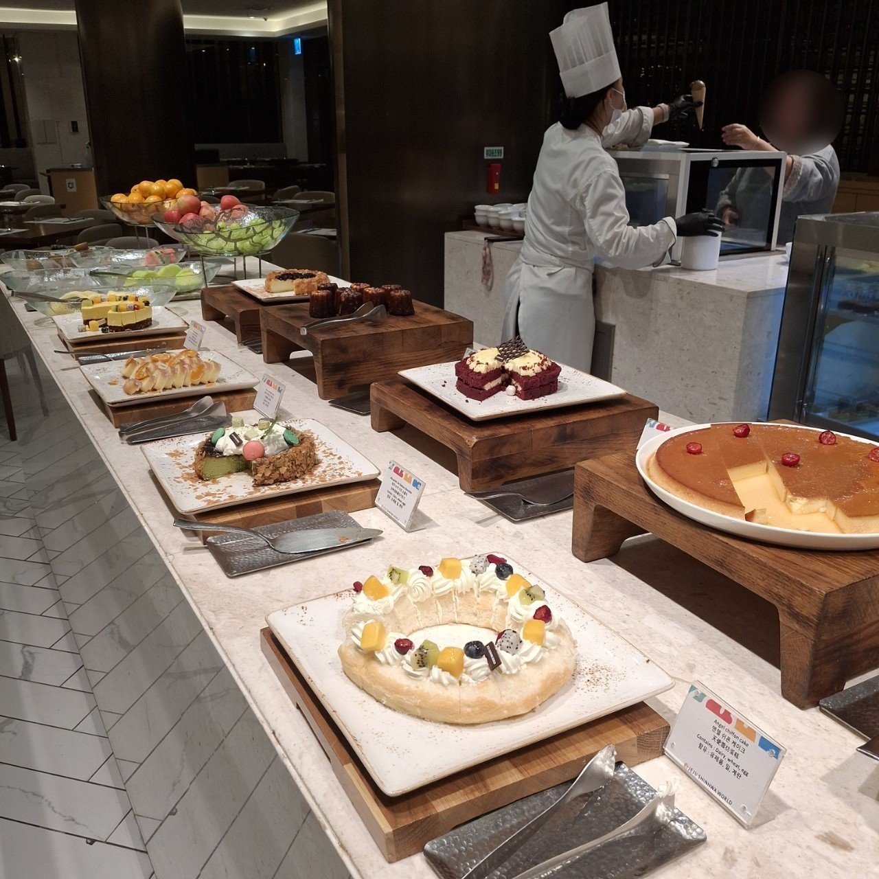 랜딩다이닝 뷔페에서 식사로 든든하게 시작해
