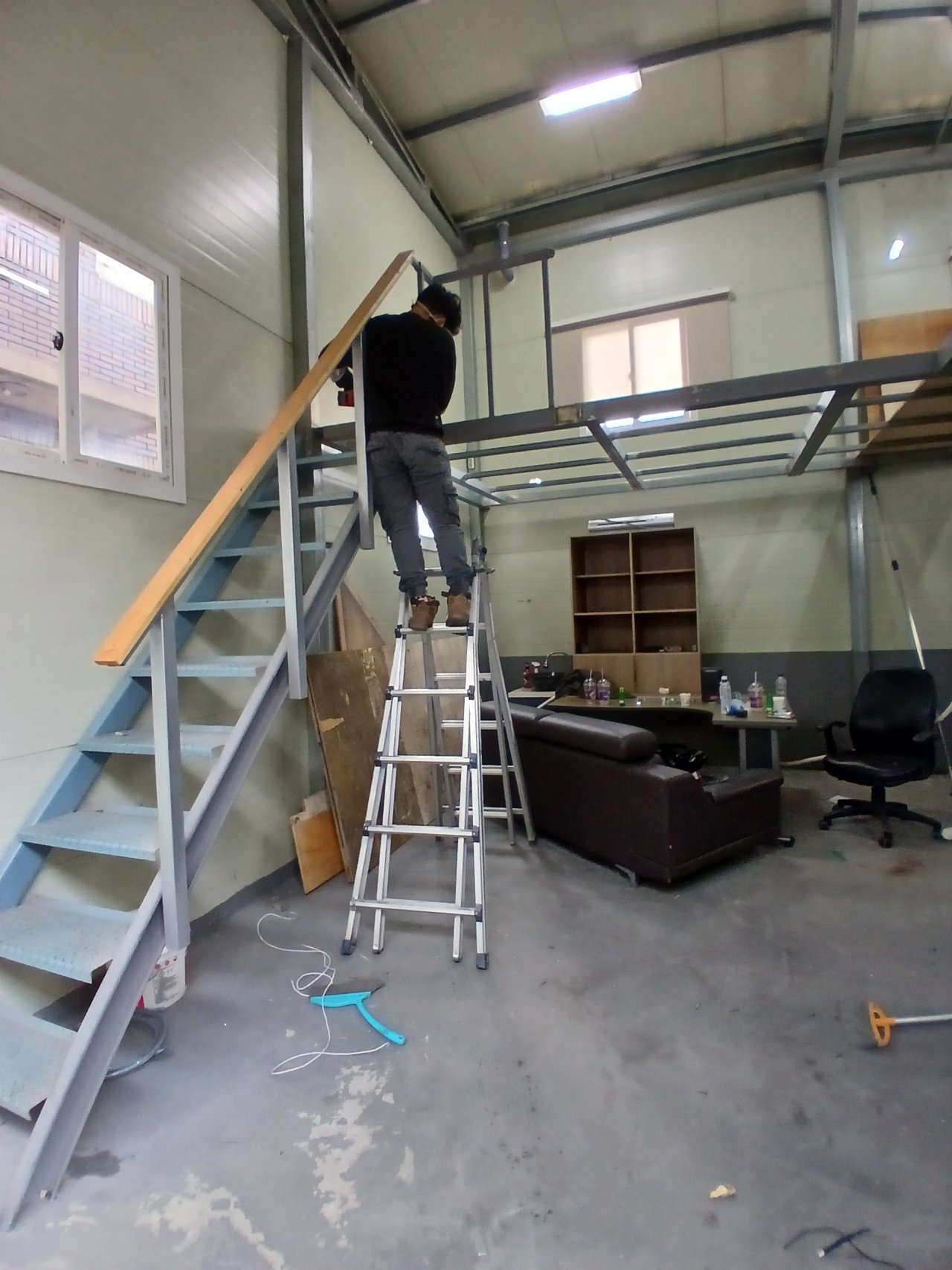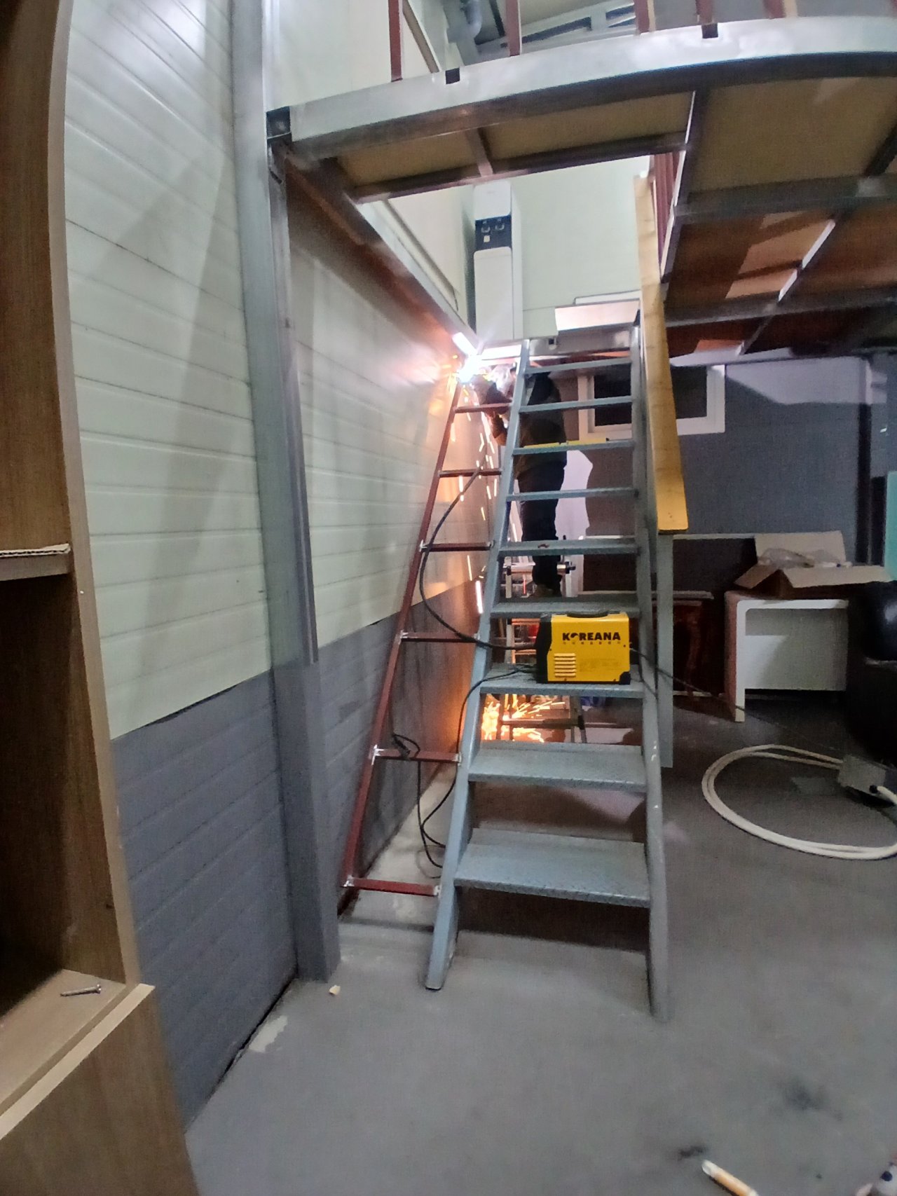 이어서 계단 위치를 조정하고 흔들림을 잡는 보강을 진행했습니다. 상부 접점을 재설정한 뒤 하부 앵커를 보강해 흔들림을 최소화했고, 벽과의 간격을 확보해 사용성을 높였습니다.