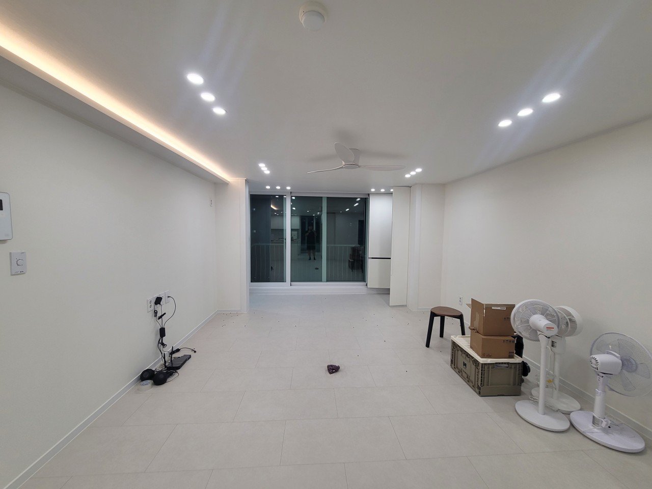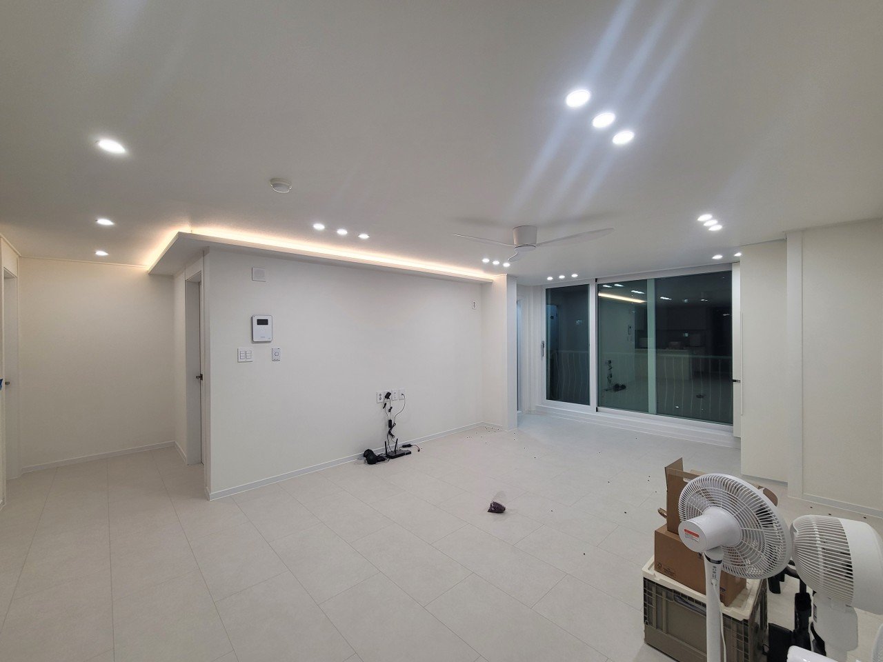 거실은 현관에서 들어서자마자 가장 먼저 눈에 들어오는 공간입니다. 이 집의 거실은 구조는 좋았지만, 바닥 톤과 조명 때문에 실제 넓이에 비해 답답하게 느껴지는 아쉬움이 있었습니다.