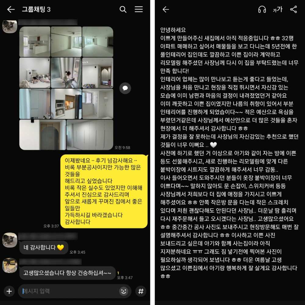 인테리어 후기, 신뢰가 이어지는 리모델링