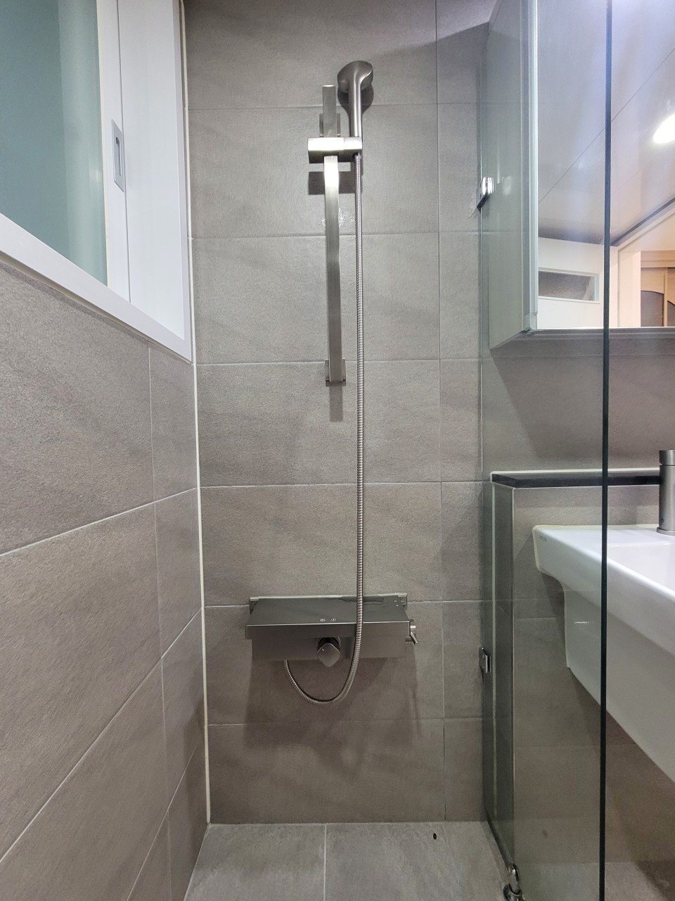 이렇게 마감하면 물때 관리나 청소도 훨씬 수월해지고, 좁은 욕실도 보다 여유 있게 느껴지는 장점이 있습니다.