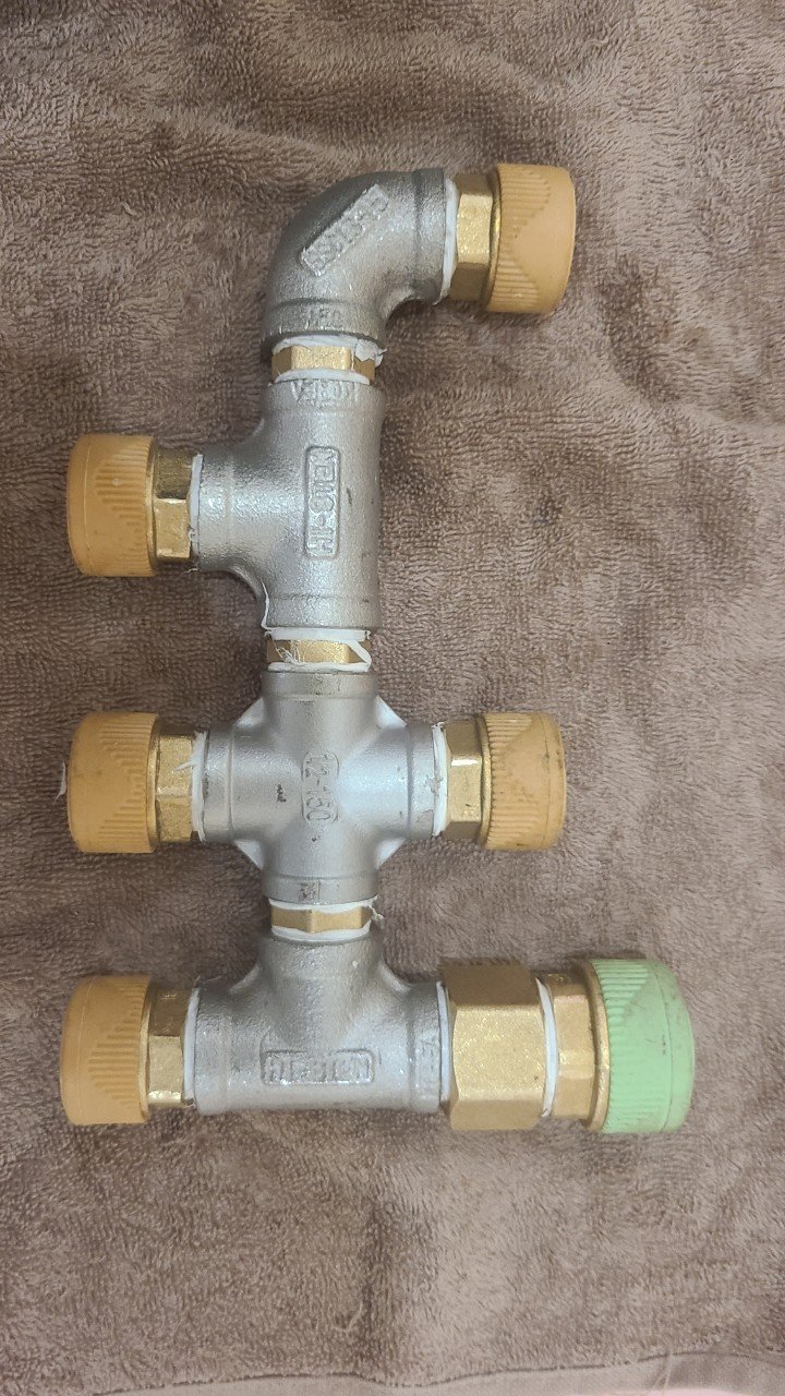 해당 분배기는 ISO 규격 제품이라 호환 부품 수급이 원활했습니다. 문제가 된 포트를 내구성 좋은 신품으로 교체하고, 마모가 심해 손으로도 쉽게 움직이던 유니온 2곳도 함께 새로 교환했습니다. 조립 전 나사산을 깨끗하게 세척하고, 실링 테이프로 보강한 뒤 과도한 토크를 피하고 규격 토크로 체결했습니다.