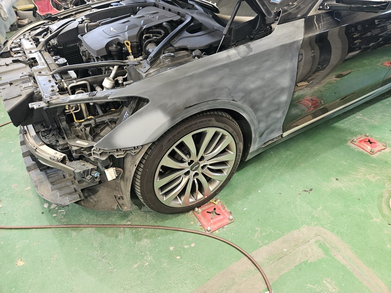 부산 연산동 판금도색·유리막코팅 보수 후기 제네시스 G80 앞범퍼·휀다·헤드라이트 외형복원