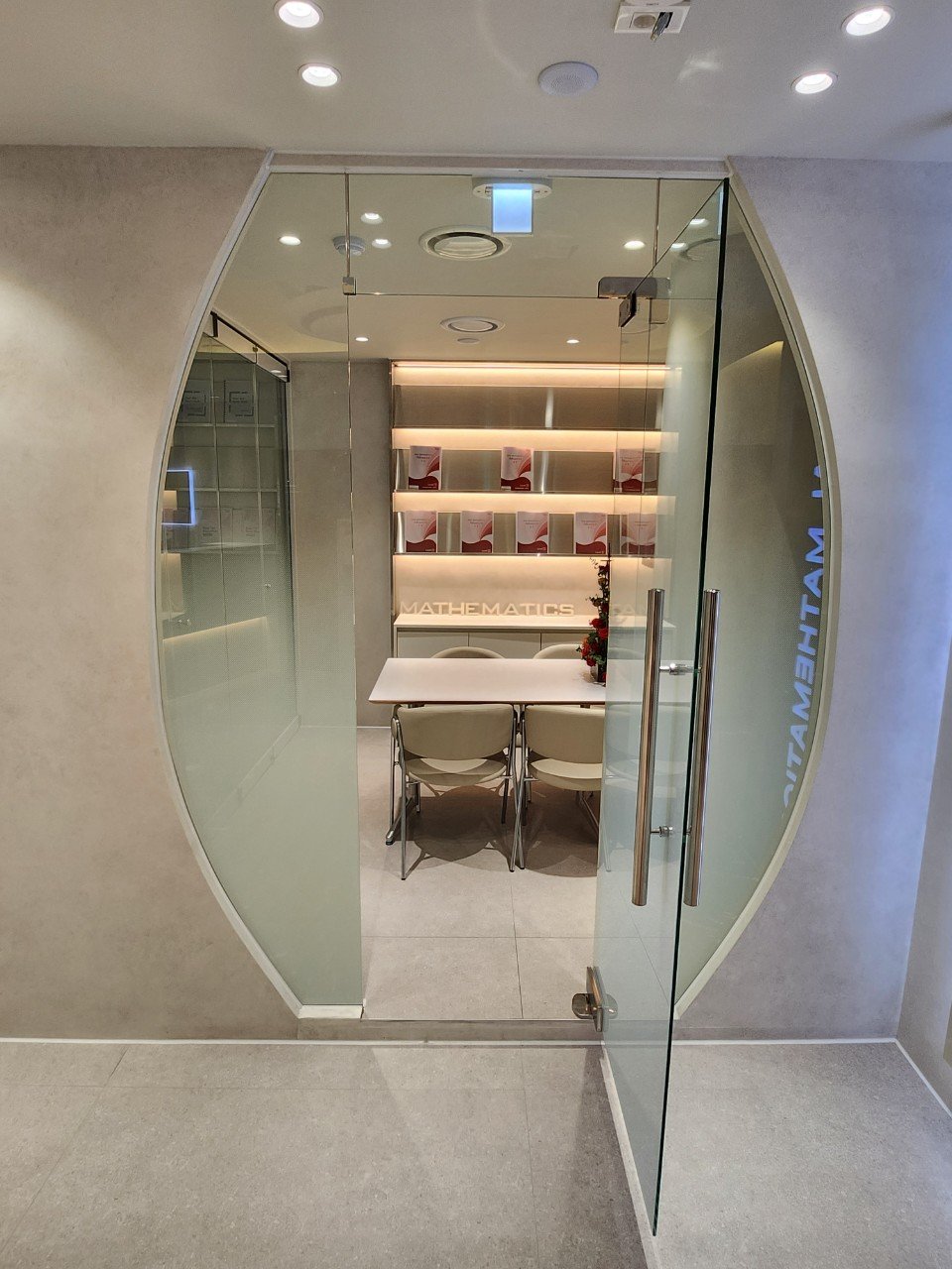 서울 대치동 수학학원 인테리어 로즈골드 자동문과 가네모도어, 곡유리 시공 후기